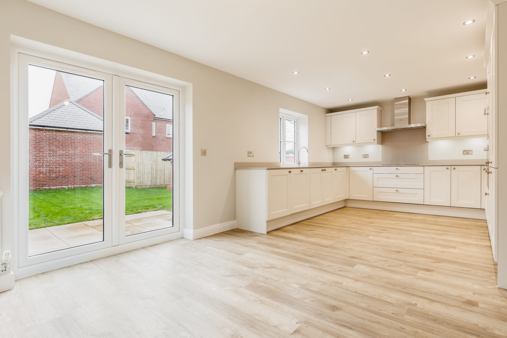 - Open-plan kitchen dining with French doors to garden