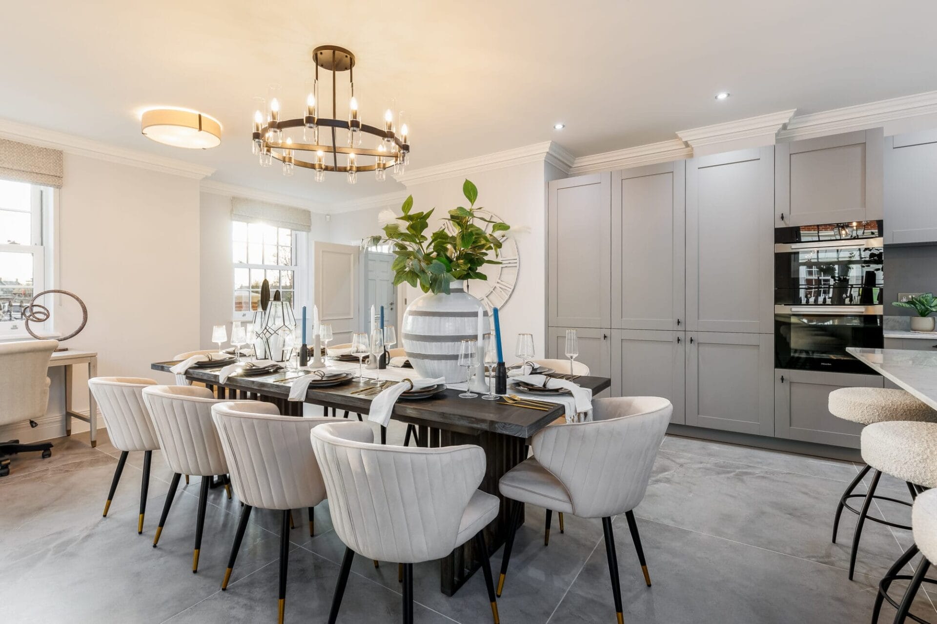 - Open-plan kitchen/dining featuring a large island, walk-in pantry, family area & French doors