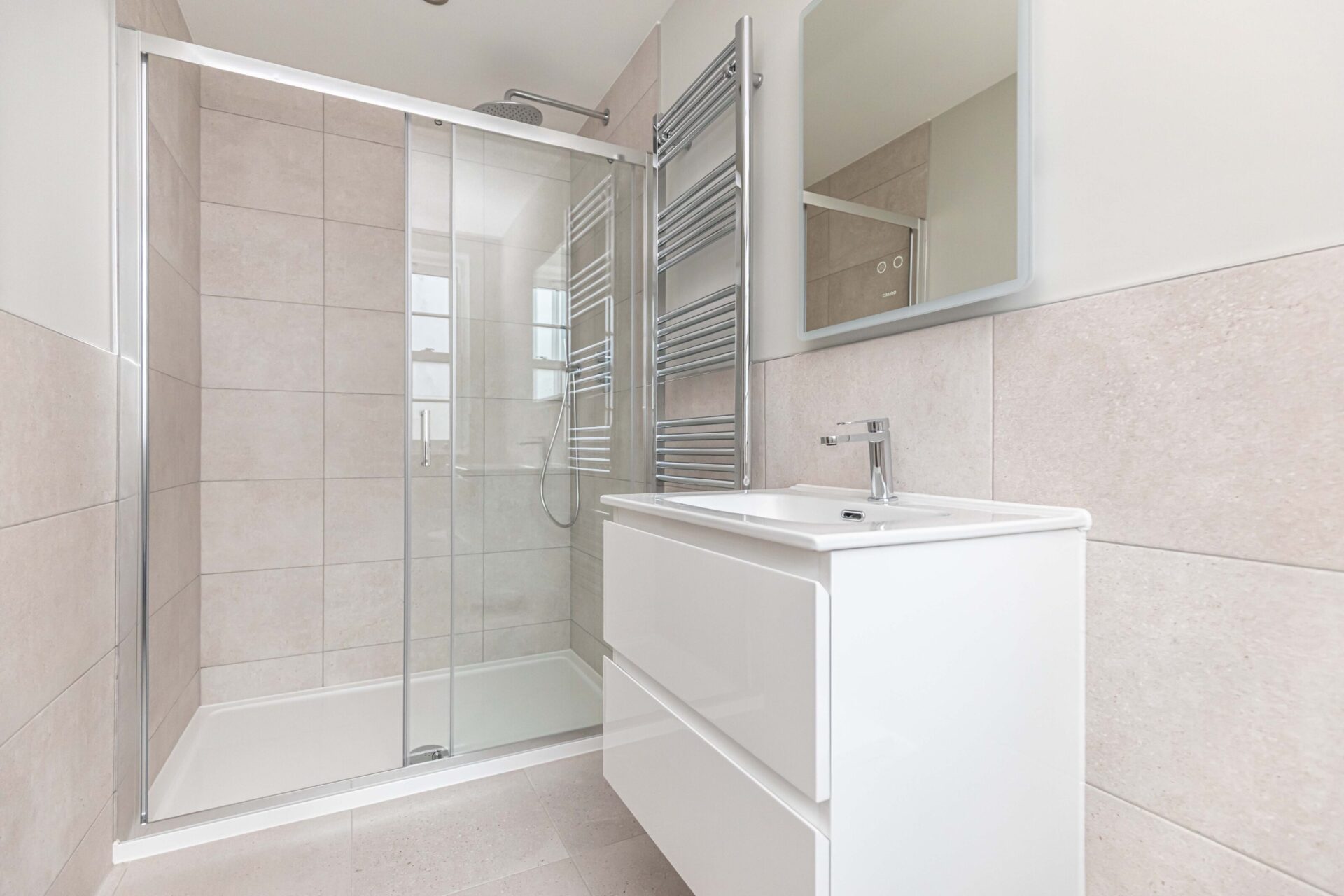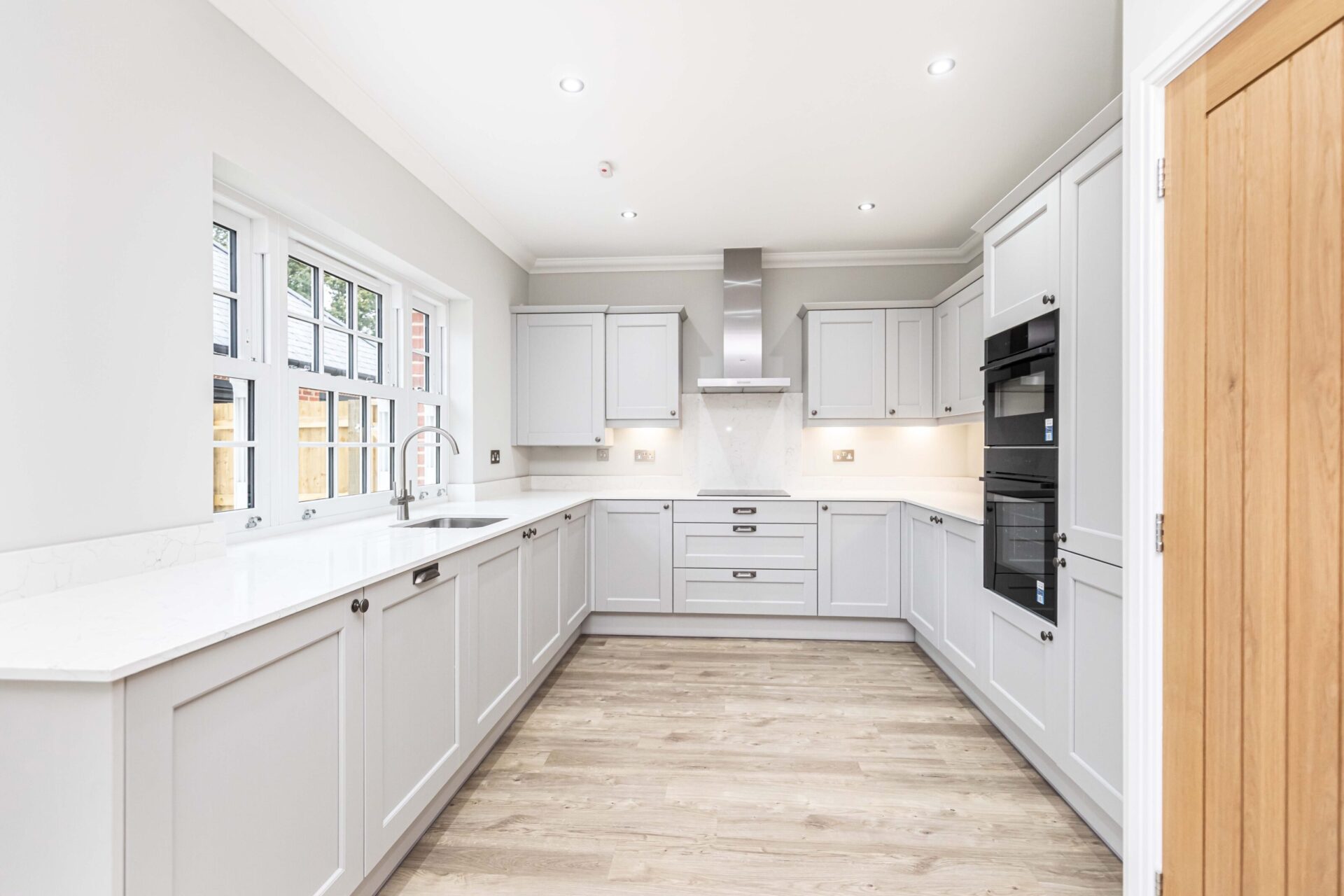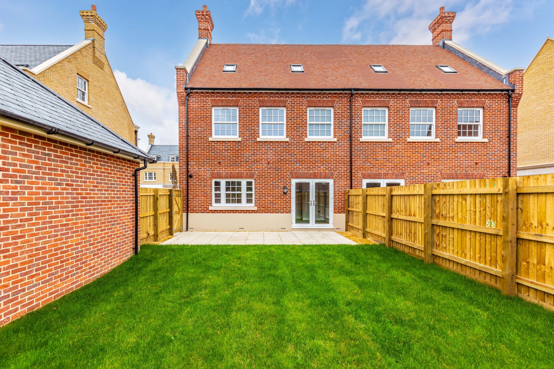 This beautifully designed three-storey home offers spacious and stylish living across all levels. The open-plan kitchen and dining area is the heart of the home, featuring French doors that open onto the garden, perfect for seamless indoor-outdoor living. The main bedroom is a true retreat, boasting a luxury en suite and double built-in wardrobe, while the second bedroom also benefits from a built-in wardrobe. The top floor completes the home with two additional bedrooms and a shower room, creating a flexible and well-balanced living space.