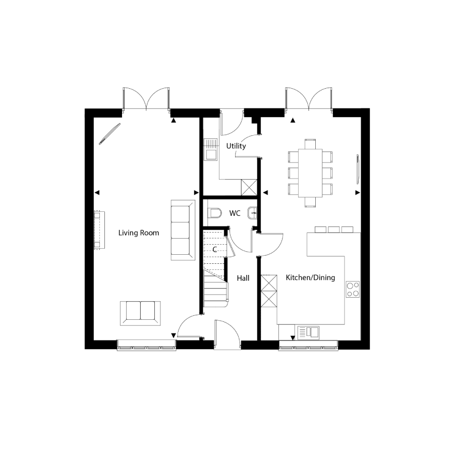 - Open-plan kitchen/diner with French doors