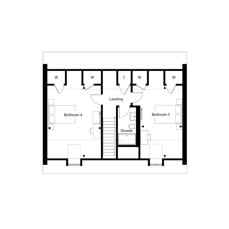 - Two bedrooms on the top floor