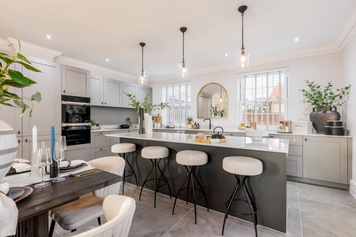 You can expect premium appliances and quartz worktops in beautifully appointed kitchens, complemented by oak internal doors, Amtico flooring, and bespoke joinery throughout. Every bathroom and en-suite is thoughtfully designed, featuring premium brassware and distinctive sanitaryware not commonly found in other new homes.